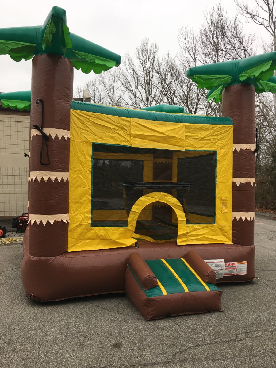 Our Jungle Bounce House is the perfect traditional bounce house for any event. It is decorated with Palm Trees and bright vivid colors. This unit has a basketball goal inside for endless hours of bouncing enjoyment.