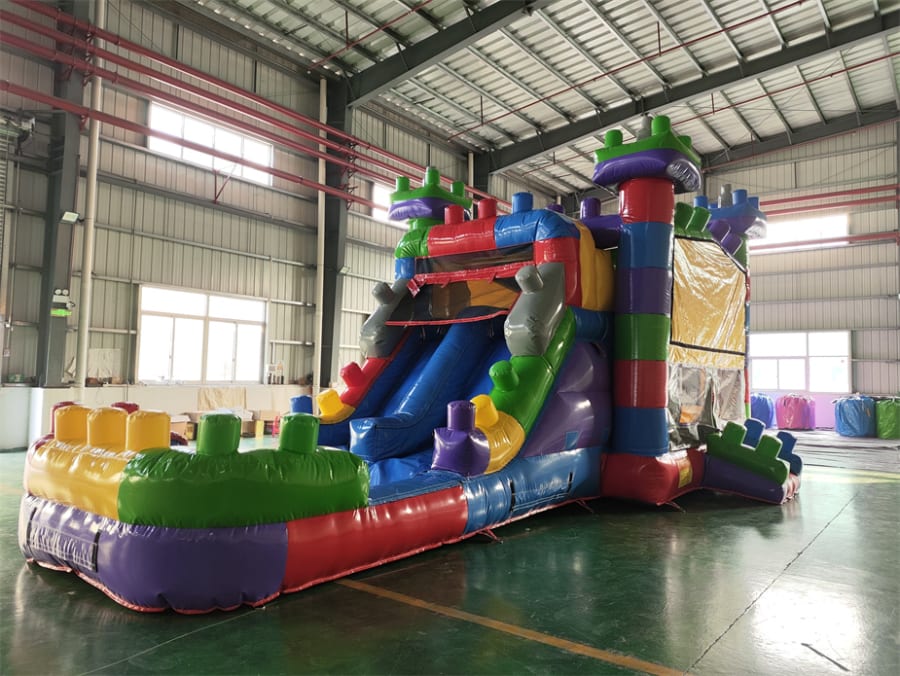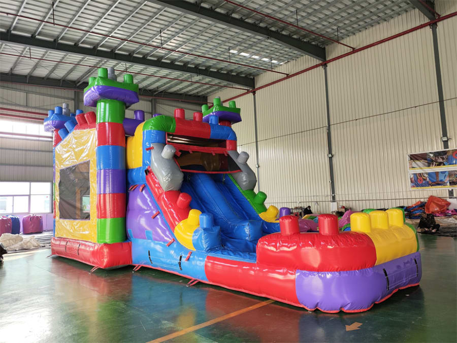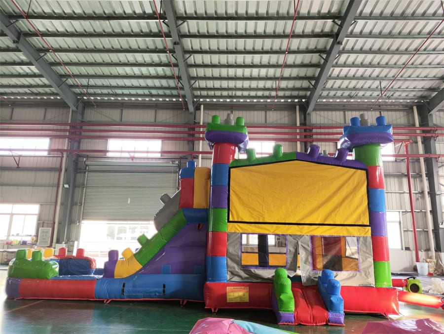 The Mega Block Dual Lane Combo delivers non-stop action for backyard parties, block events, and summer rentals. This inflatable combo features pop-up obstacles, a basketball hoop, dual-lane slides, and a large splash pool for the perfect finish. Clear dimensions and bold features make setup and planning simple. 🚀