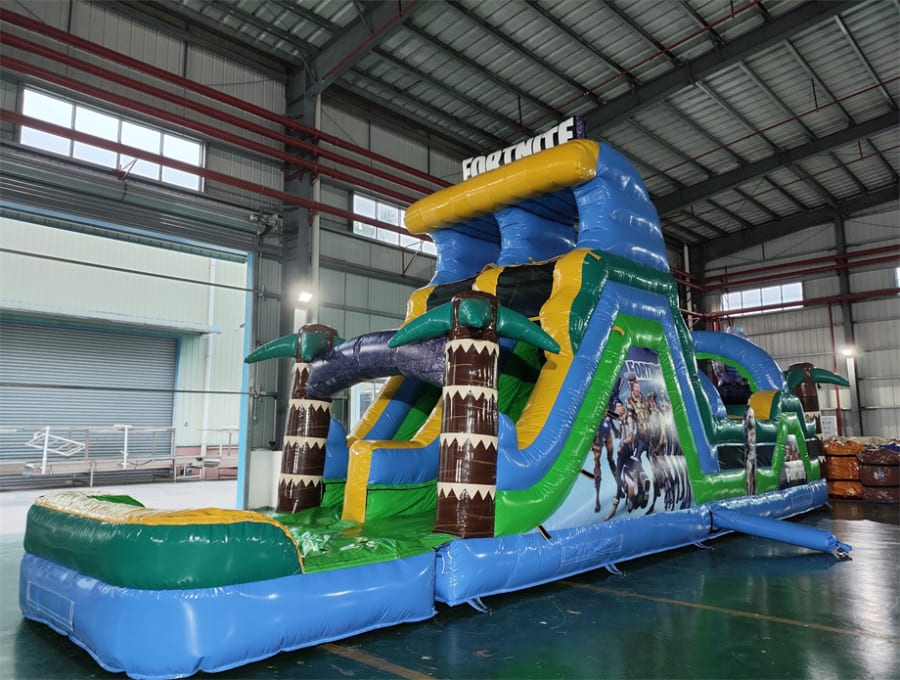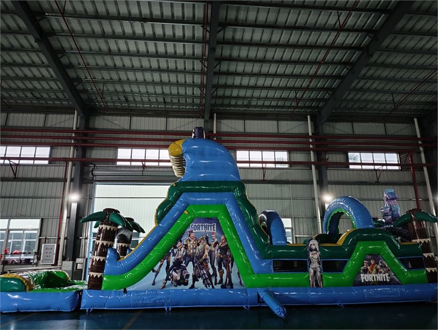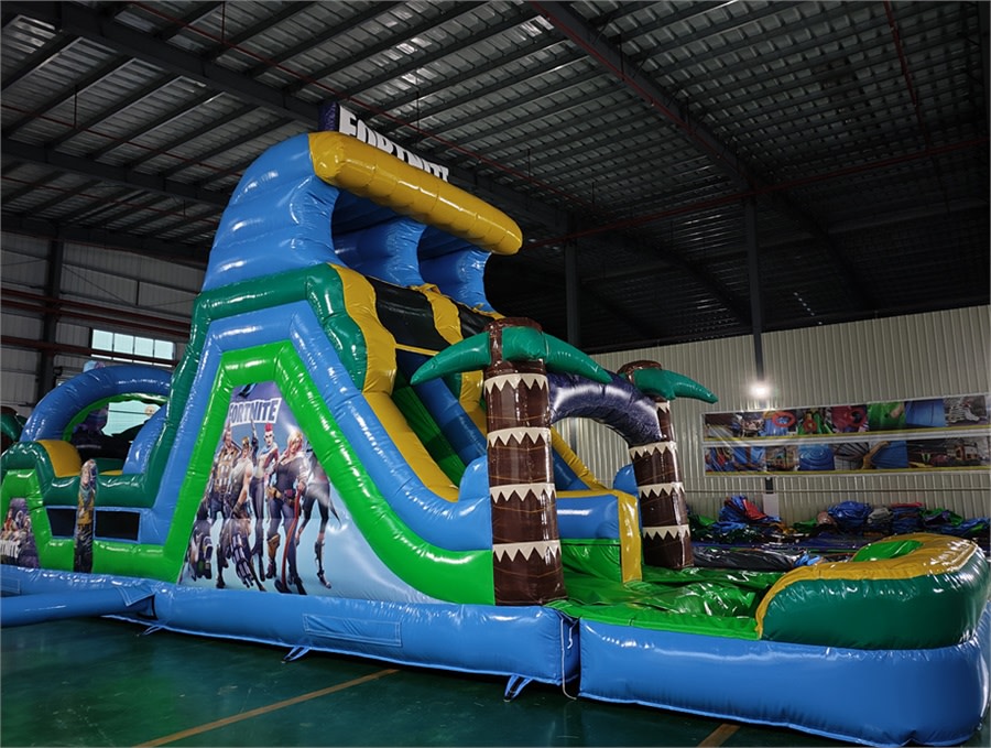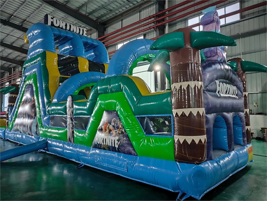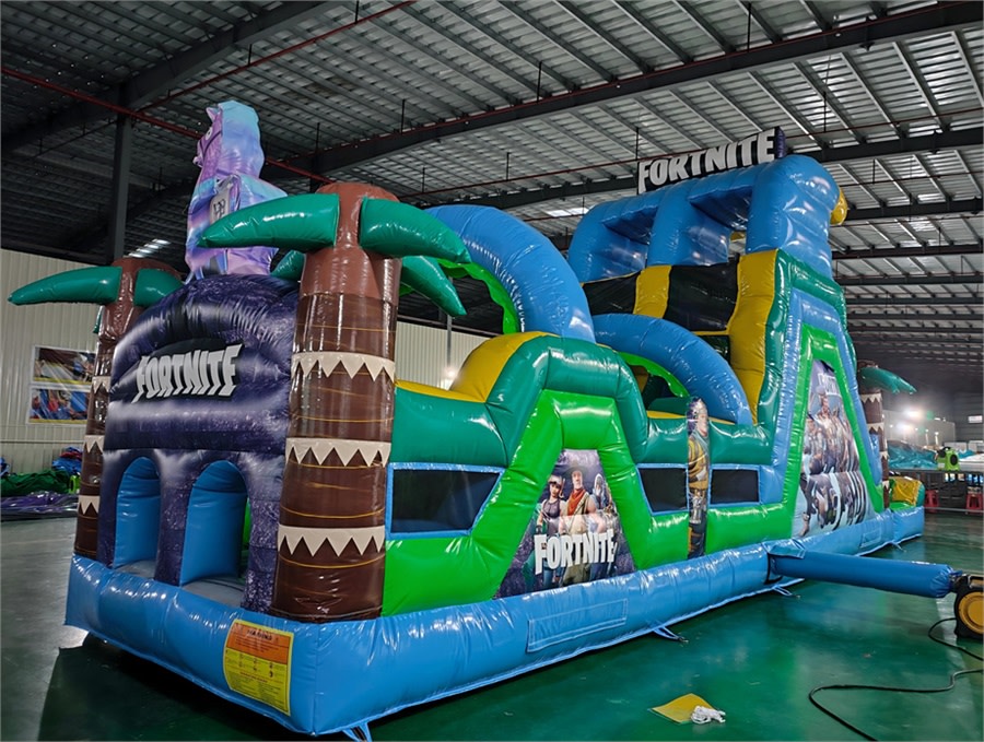 Bring the thrill home with the 42' Fortnite Obstacle Course in Louisville Kentucky. This big, action-packed inflatable combines a multi-element obstacle course with a 17+ foot tall waterslide. Race your friends, conquer hurdles, and finish with a splash in the built-in pool. Perfect for parties, team events, and backyard fun. ๐๐ฆ